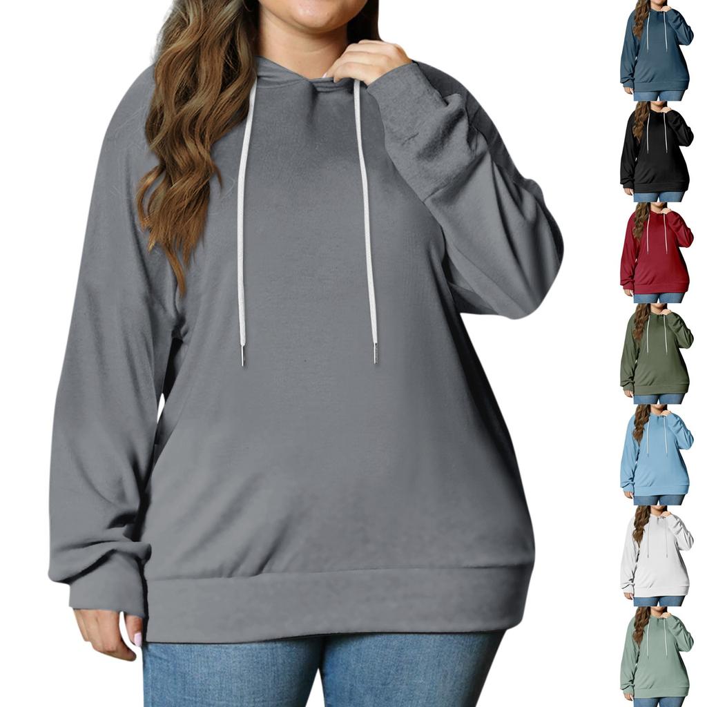 Женский пуловер больших размеров с капюшоном, однотонная толстовка с длинным рукавом и капюшоном