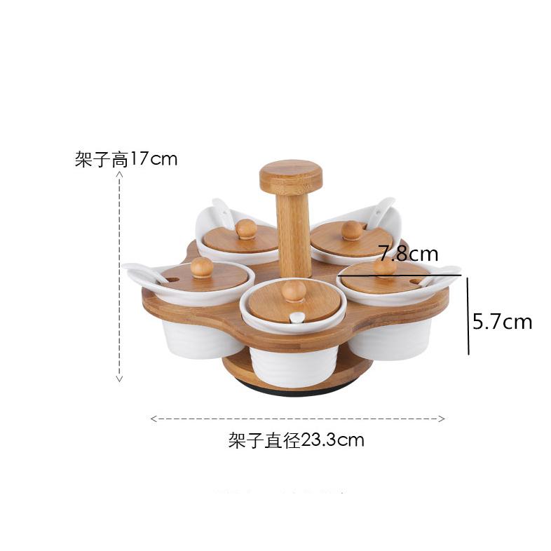 Керамическая банка для специй с пятью сетками, вращающаяся деревянная полка, белая банка для специй, набор из пяти предметов, кухонная коробка для приправ, контейнер для приправ