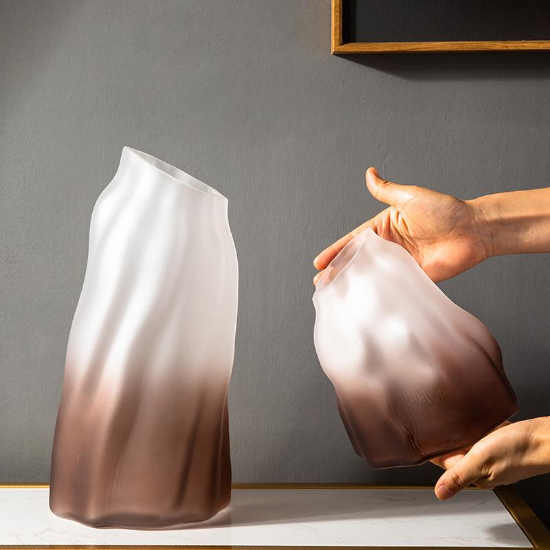 Креативная ваза для камней специальной формы из матового стекла с градиентом, украшение для гостиной, цветная прозрачная ваза для цветочной композиции