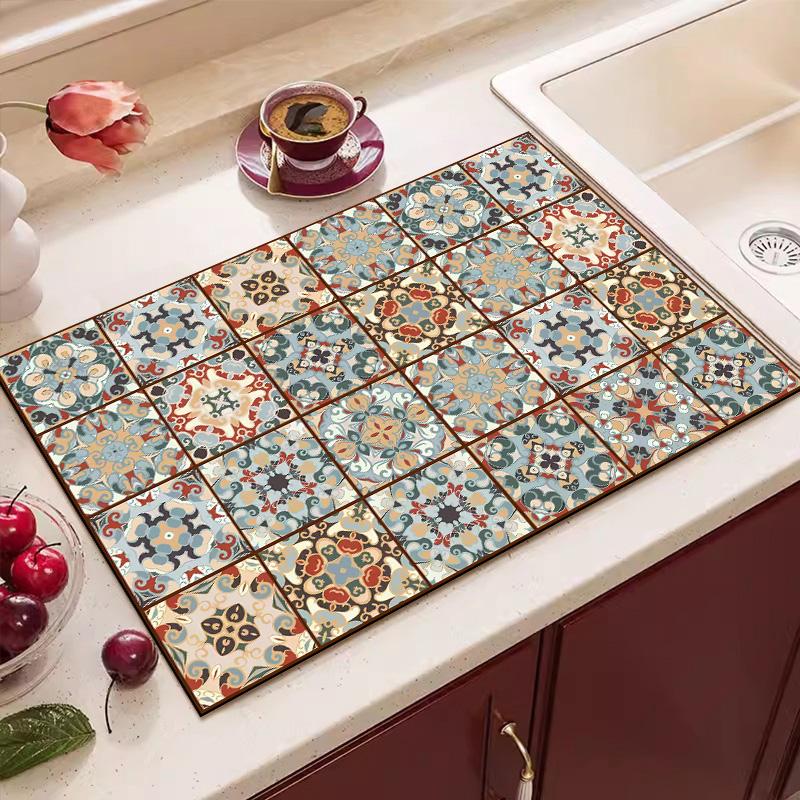Ретро-подложка для слива воды, кухонная подложка для кофе, винтажный кухонный быстросохнущий коврик, нескользящий впитывающий коврик для столешницы