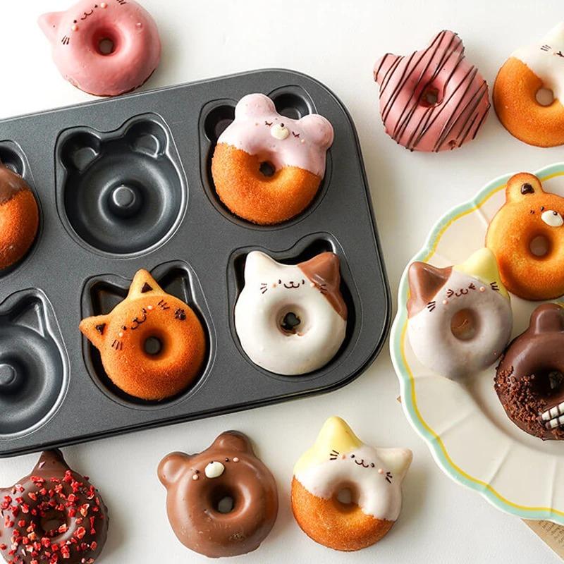 Инструменты для выпечки пончиков в виде мультяшного медведя на 6 чашек с противнем для шоколадного торта, антипригарная форма для торта Madeleine, форма для мини-пончиков и маффинов — купить товар онлайн с бесплатной доставкой по всему миру!