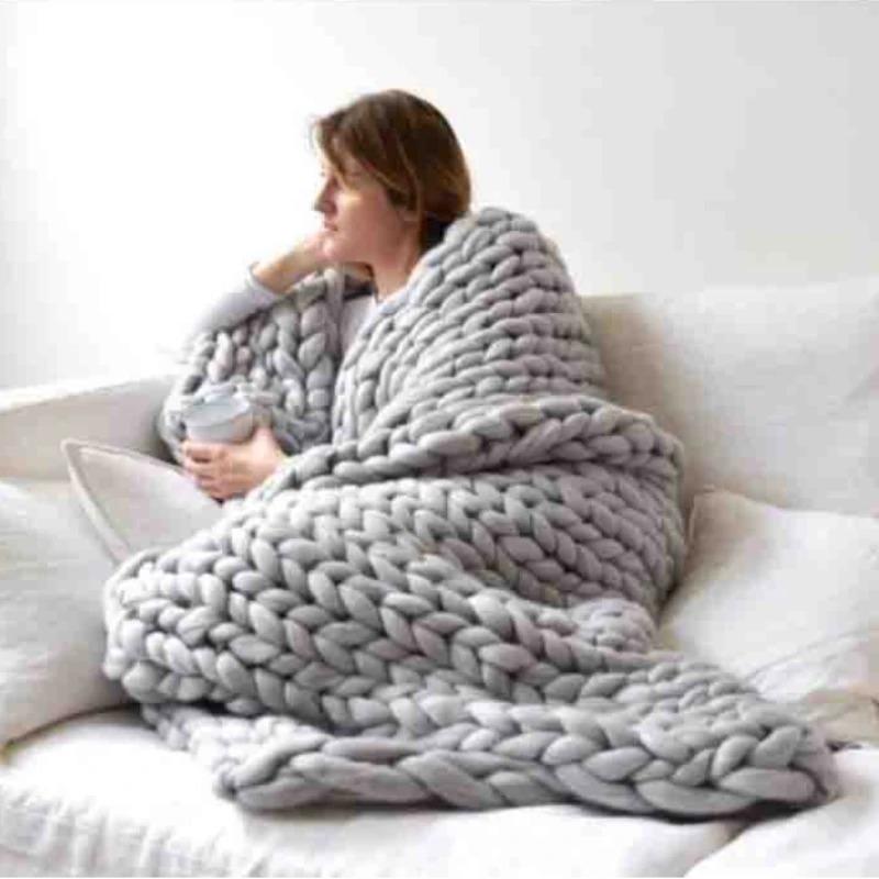 Модное толстое шерстяное одеяло из мериносовой шерсти, толстое вязаное одеяло из крупной пряжи, теплое зимнее одеяло для дивана-кровати — купить товар онлайн с бесплатной доставкой по всему миру!