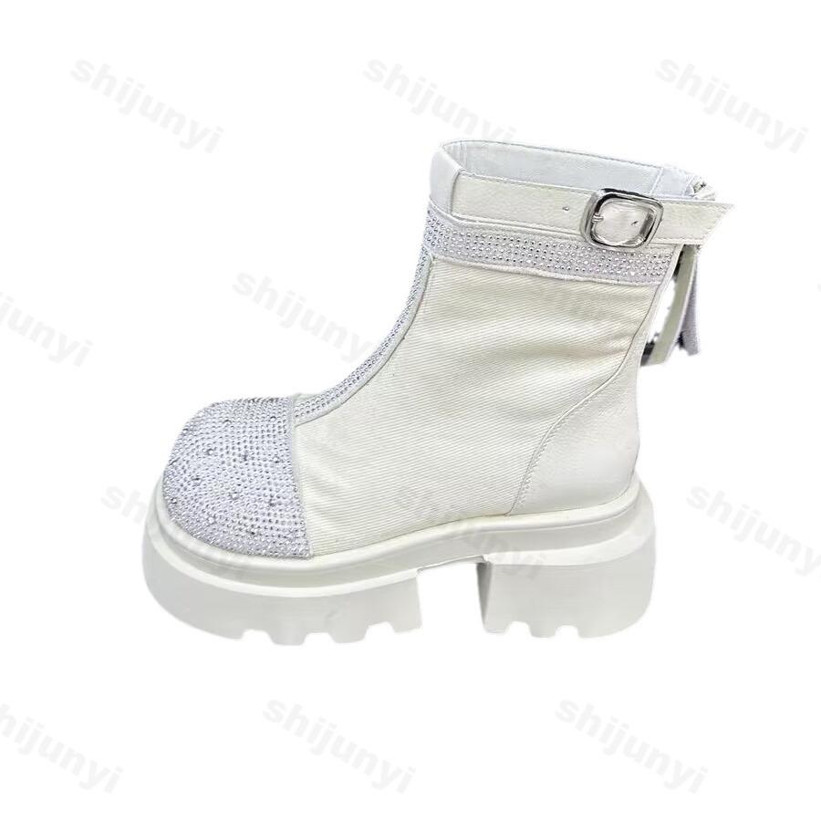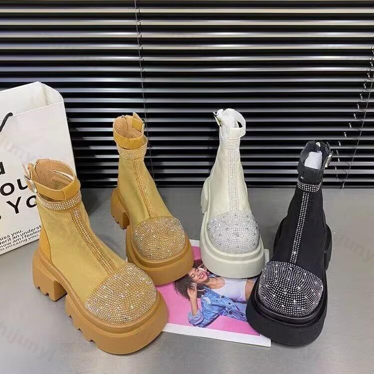 Ботильоны женские на платформе из замши на высоком каблуке, дизайнерские короткие сапоги со стразами, зимние модные мотоциклетные сапоги, женские готические сапоги