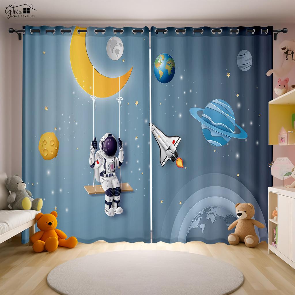 Мультфильм Вселенная 3D Печать Шторы Космонавт Астронавт Космический корабль Ракета Планета Инопланетянин Спальня Детская комната Шторы 2 ШТ