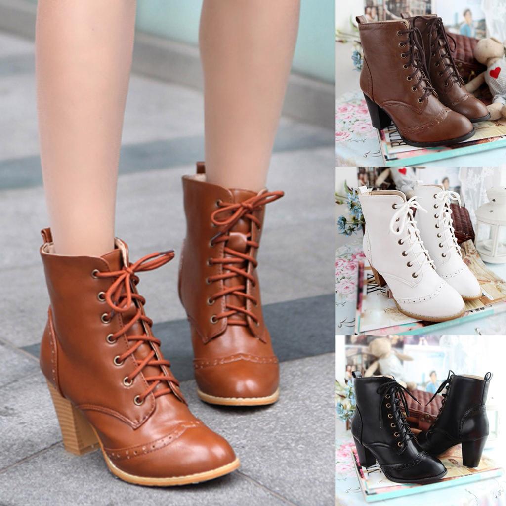 Женские модные ботинки на шнуровке, повседневные одинарные ботинки большого размера на толстом каблуке — купить товар онлайн с бесплатной доставкой до всему миру!