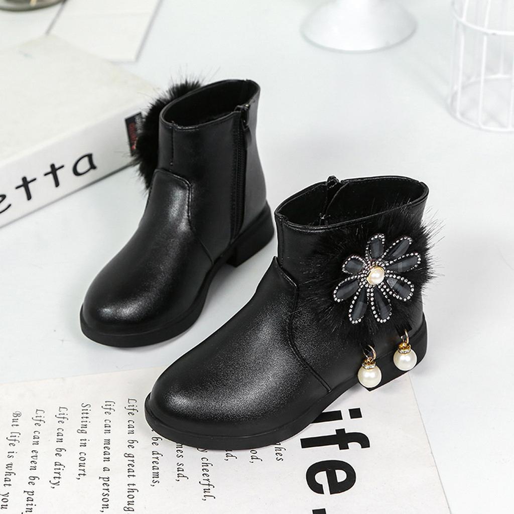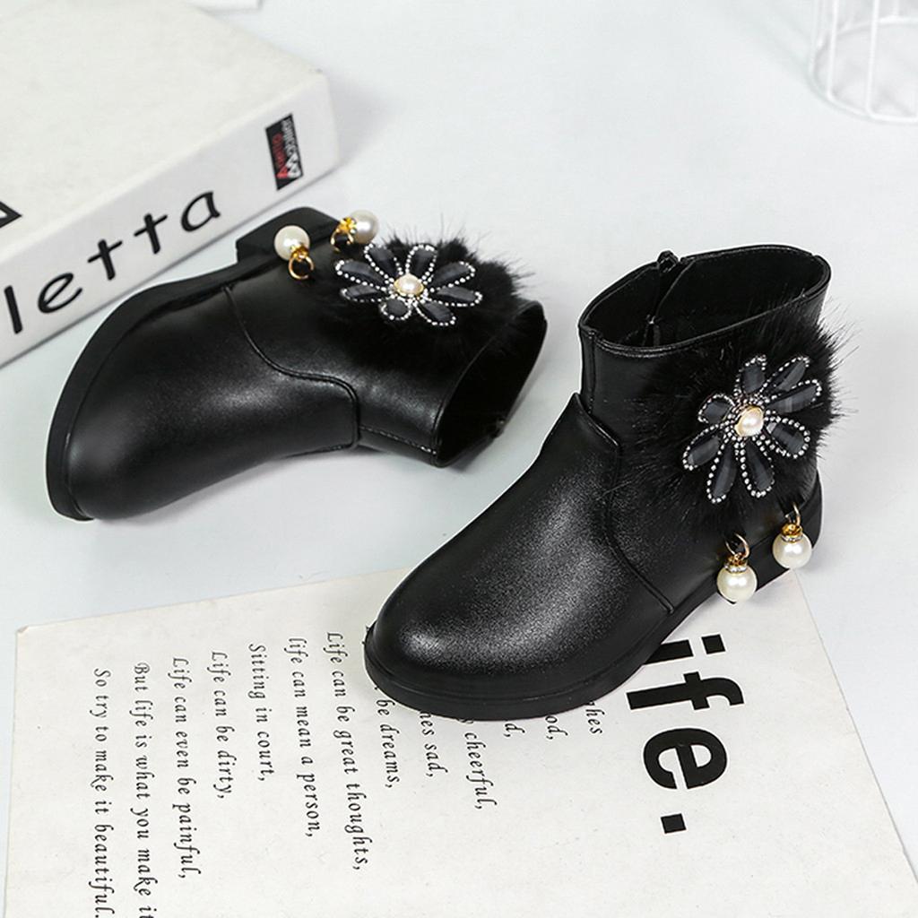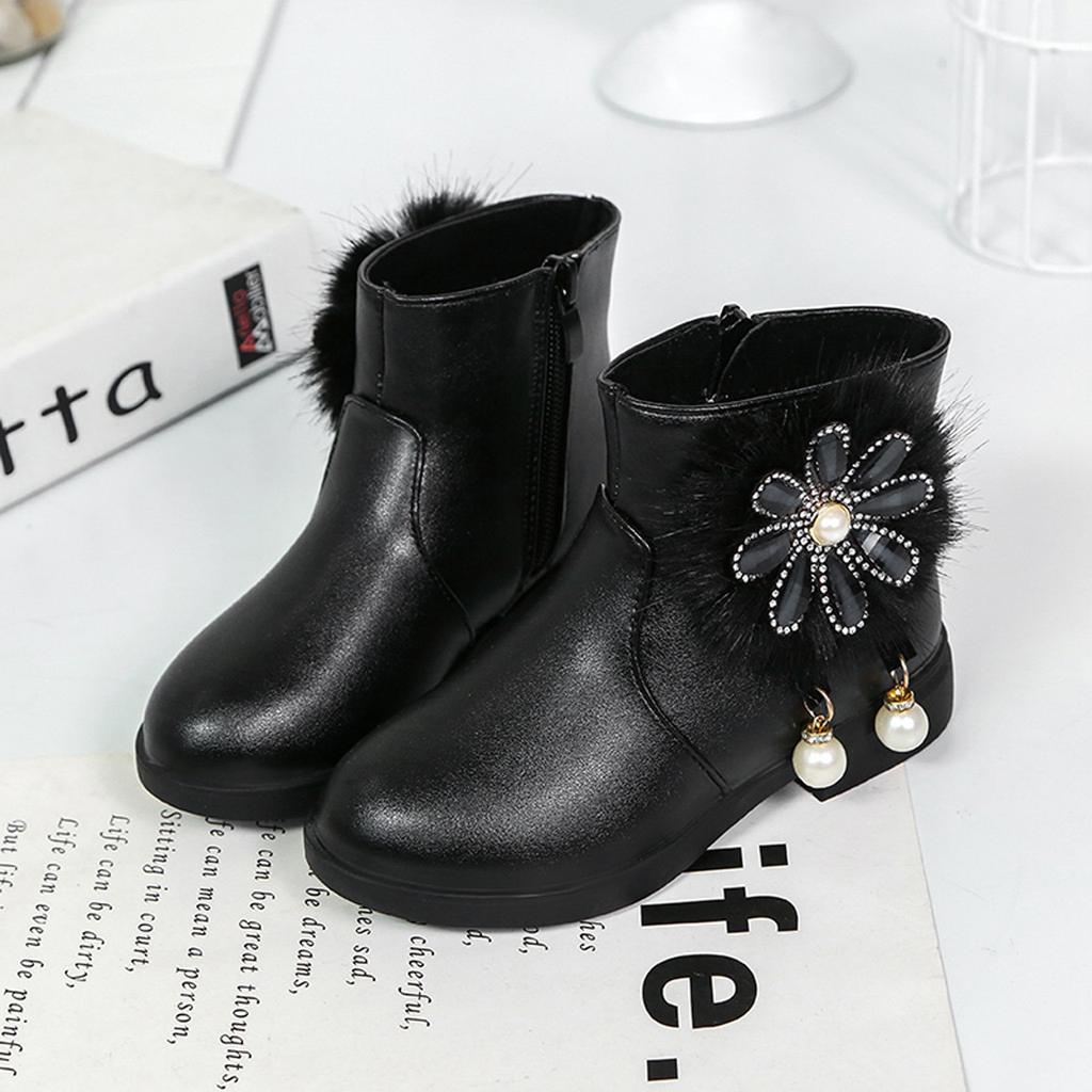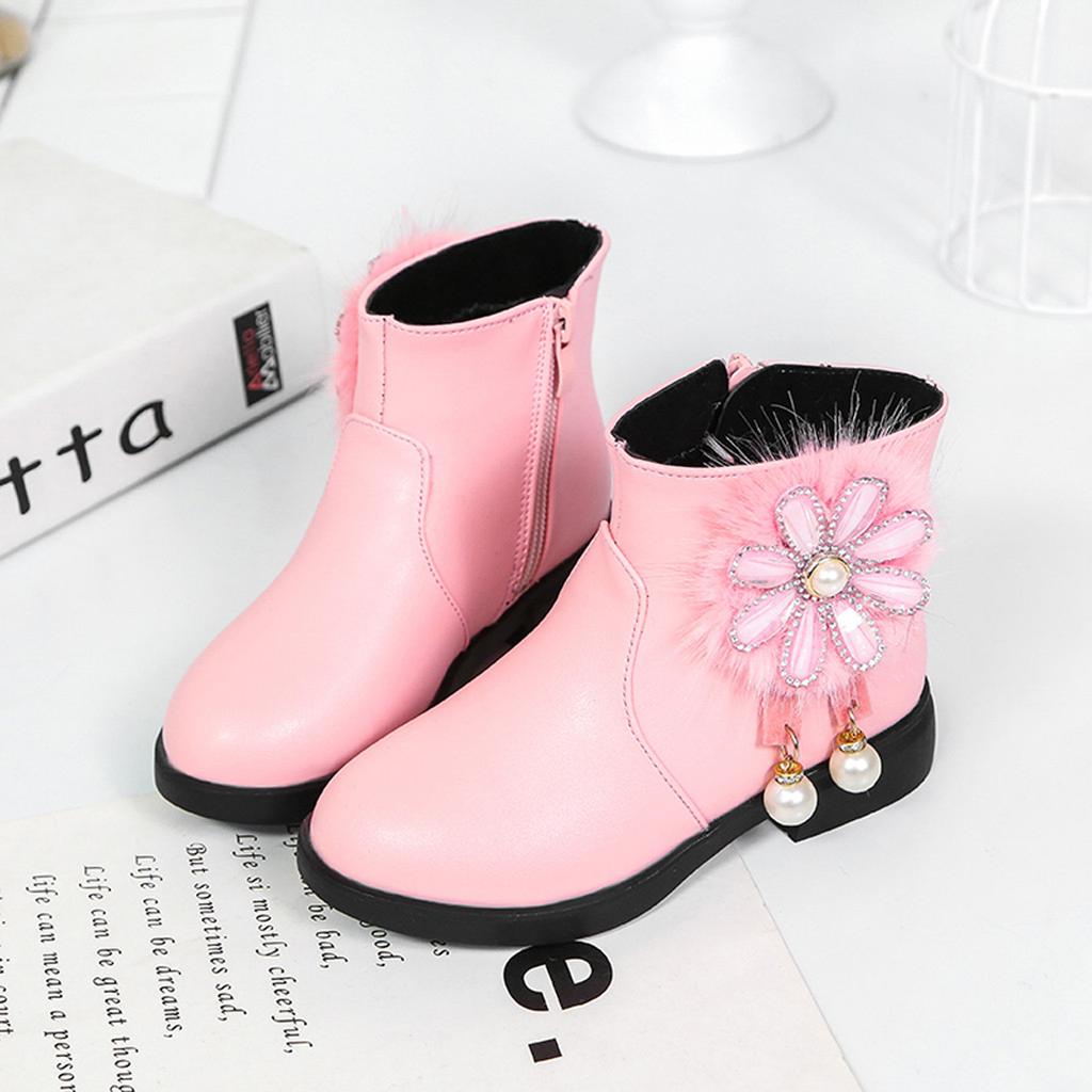 Девочки Сапоги Младенцы Дети Малыш принцесса Жемчужина Цветочная кожаная обувь Зимние пинетки
