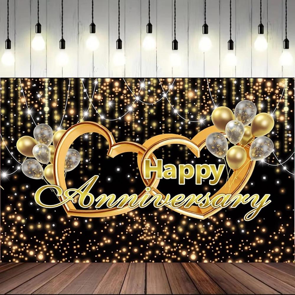 Фон для годовщины с золотым и белым баннером, украшением из золота, капающим блестками и кристаллами, фотографиями — купить товар онлайн с бесплатной доставкой до всему миру!