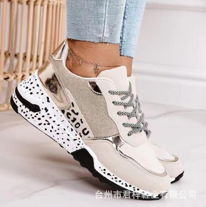 Женские кроссовки 2024 года с леопардовым принтом, на шнуровке, женские кроссовки из вулканизированной кожи, спортивные женские кроссовки на платформе, дышащие, женские туфли — купить товар онлайн с бесплатной доставкой по всему миру!