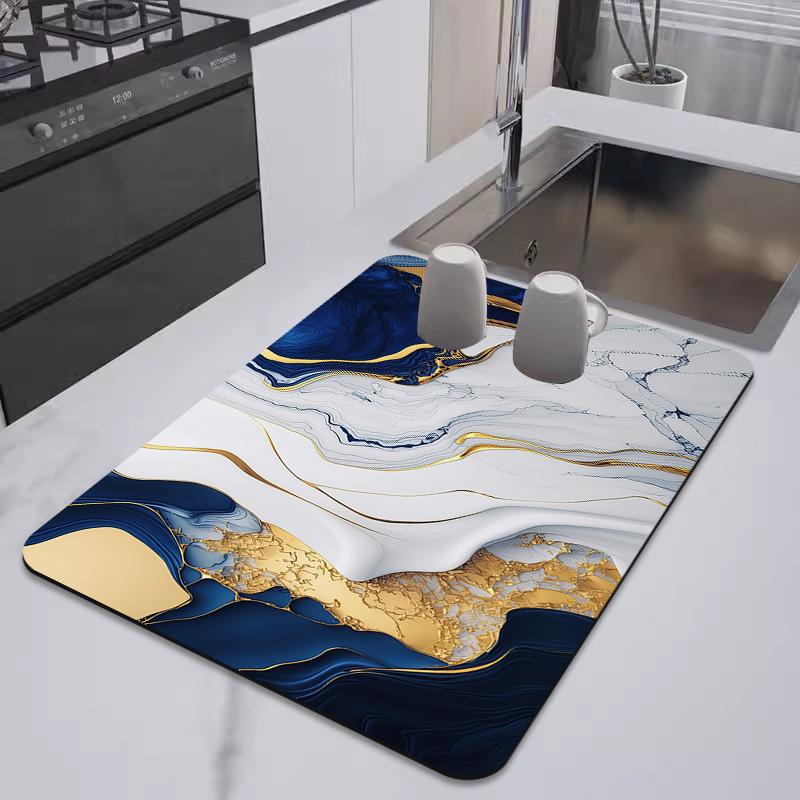 Нескользящий коврик для сушки посуды на кухне, мраморный коврик для слива, принт, коврик для кофейной чашки, впитывающий воду, защитный коврик для столешницы в ванной