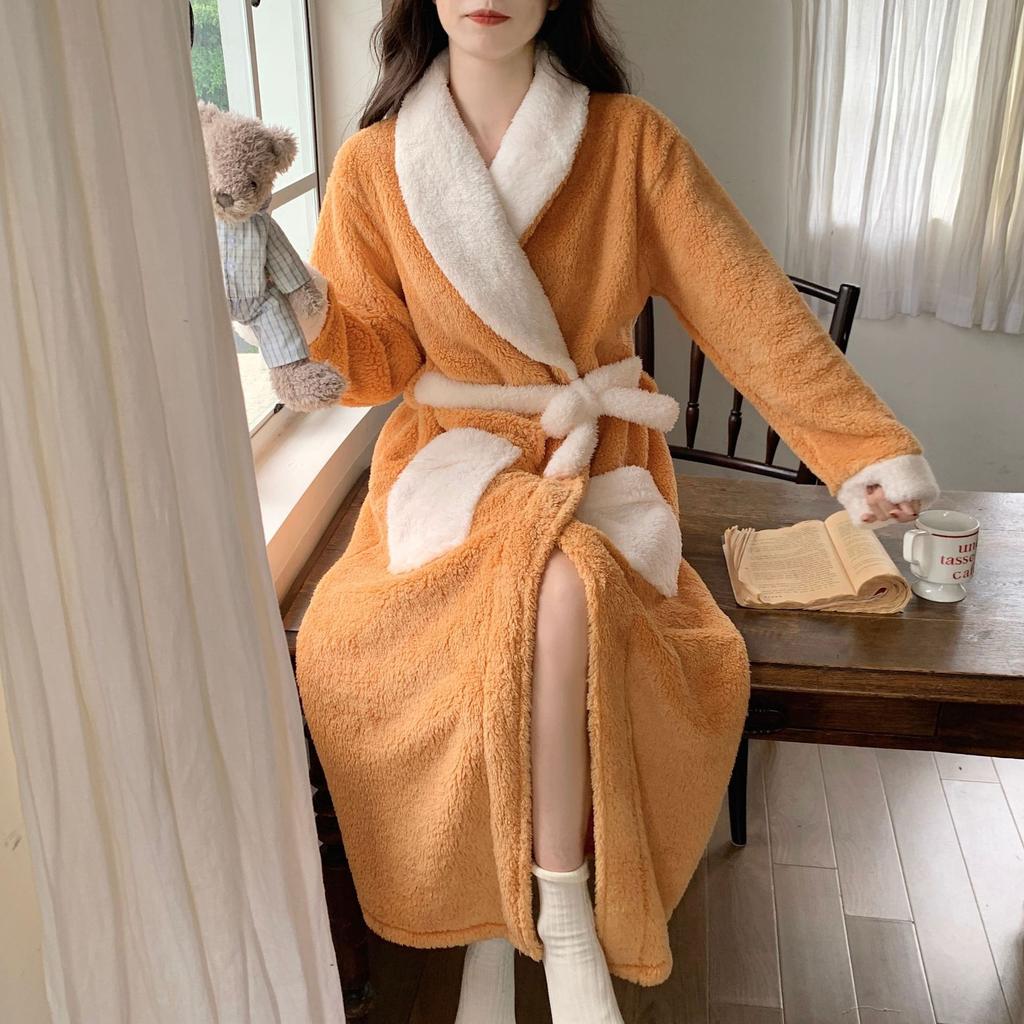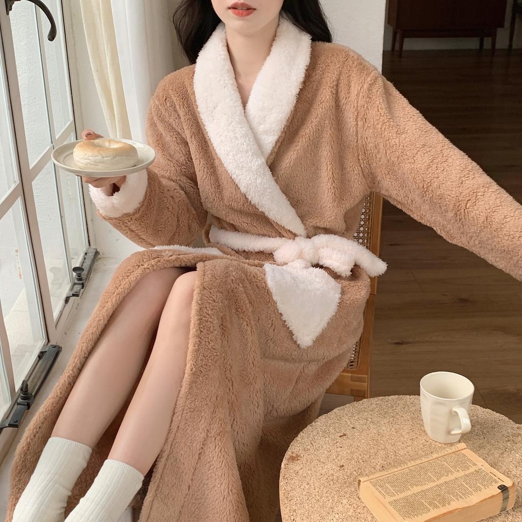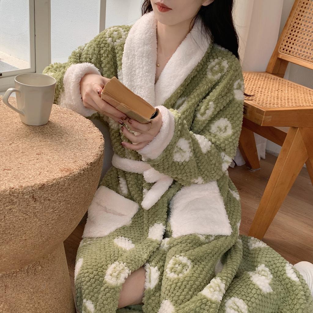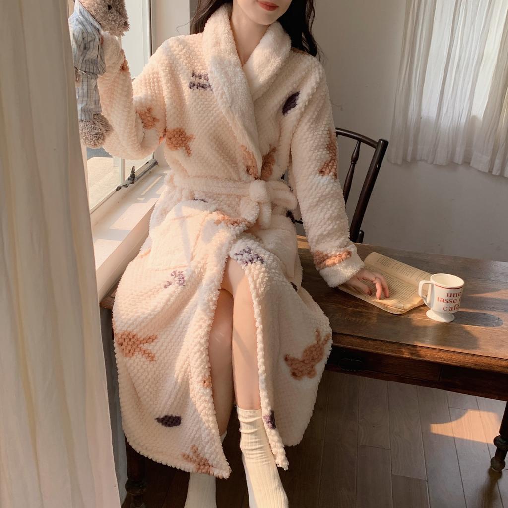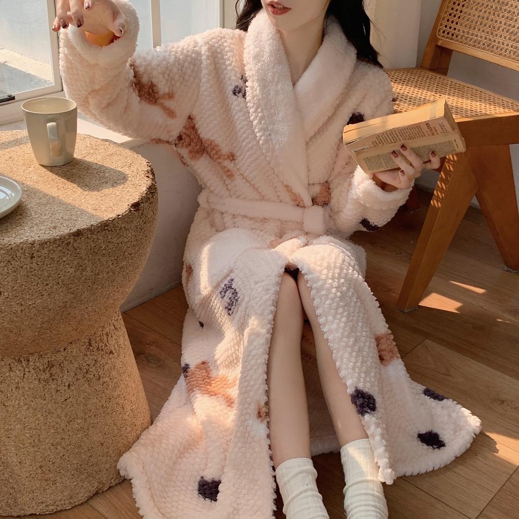 Халаты с принтом, банные халаты, утолщенная фланелевая ночная рубашка, женская осенне-зимняя теплая корейская версия, простая ночная рубашка с длинными рукавами