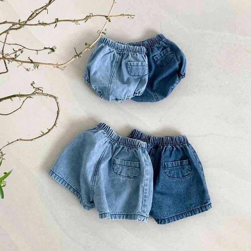 Мальчики и девочки карман джинсовой сумки ягодицы брюки детские корейский стиль джинсовые шорты летние детские шорты тонкие брюки джинсы для девочек