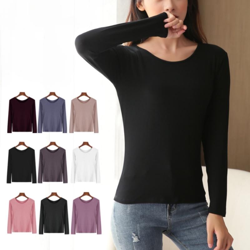 Женский топ с длинным рукавом, однотонная футболка на весну и осень