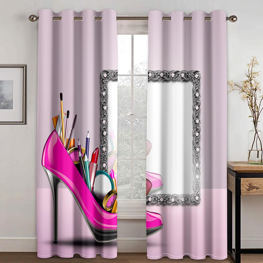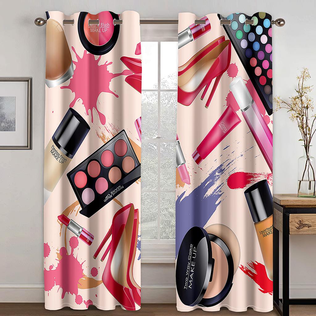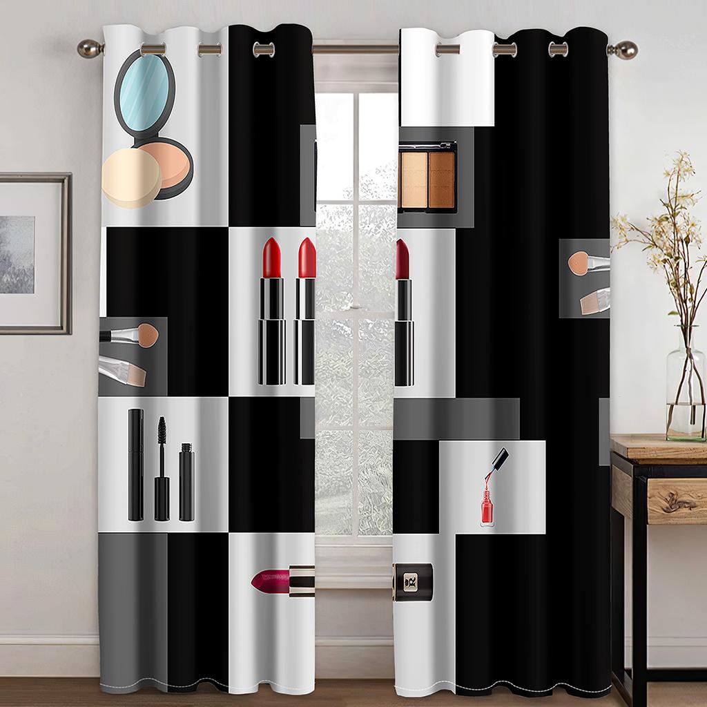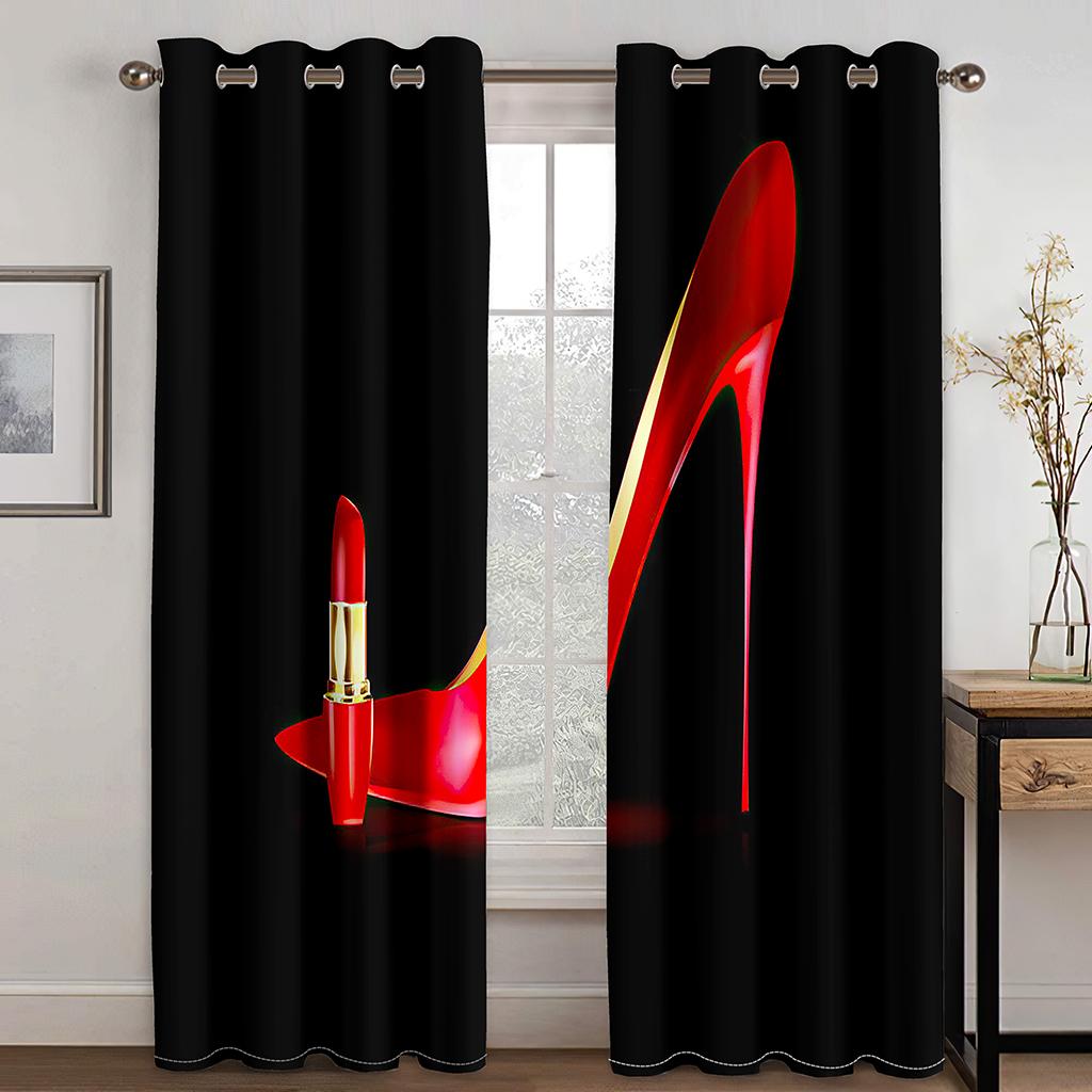 2 шт. Шторы для салонов красоты простые красные губы кисточка для макияжа люверсы верхняя ткань шторы декор для гостиной офис домашний декор