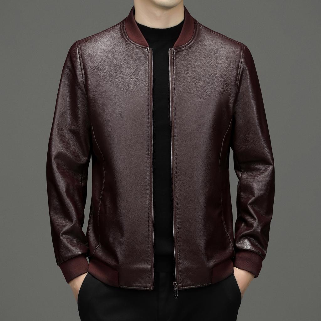 Кожаная куртка осень и зима тонкий мотоциклетный костюм среднего возраста повседневный бейсбольный воротник мужская кожаная куртка папа топ