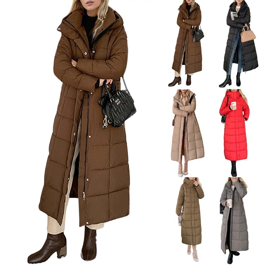 Женское однотонное модное повседневное утолщенное и удлиненное до колена зимнее теплое хлопковое пальто-пуховик