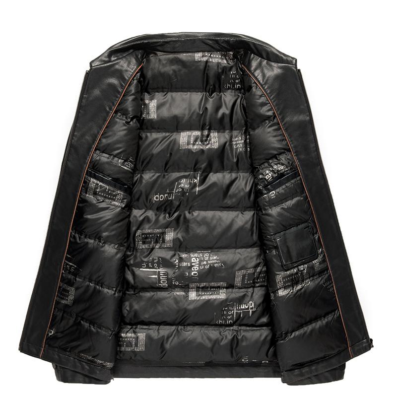 Осенне-зимняя мужская кожаная куртка с лацканами, повседневное теплое толстое пальто с пуховым наполнителем