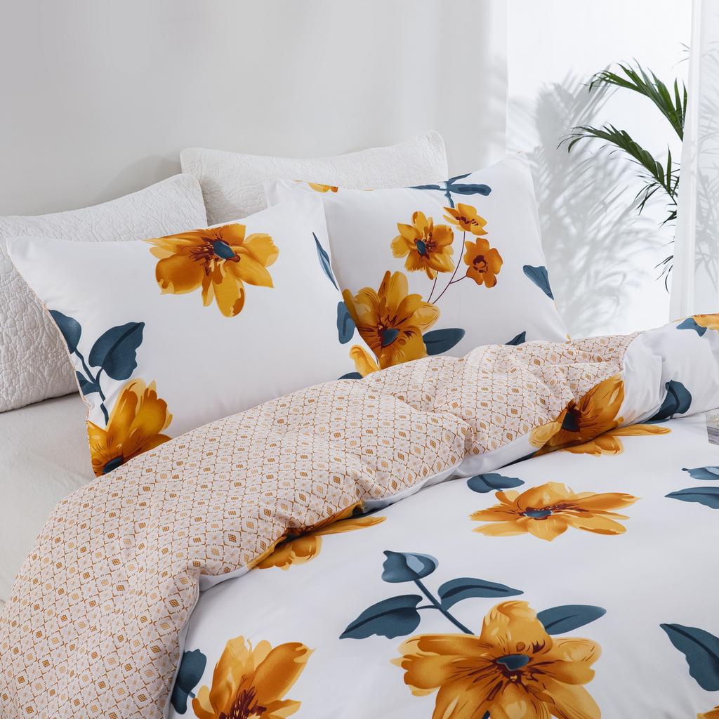 Пододеяльник с цветочным принтом, комплект из 3 предметов, 1 пододеяльник с цветочным принтом, 2 наволочки, мягкое постельное белье с растительным принтом