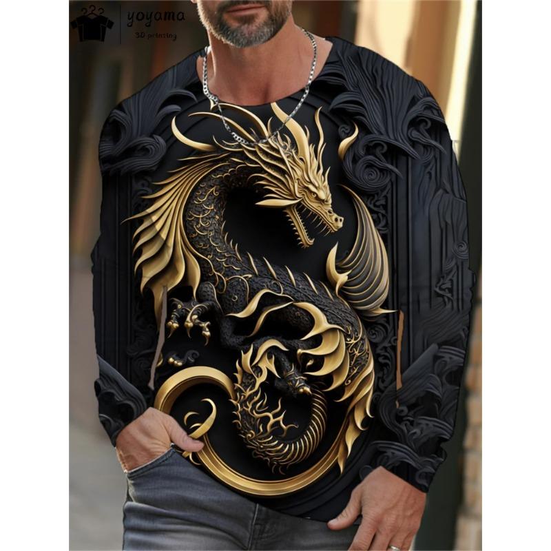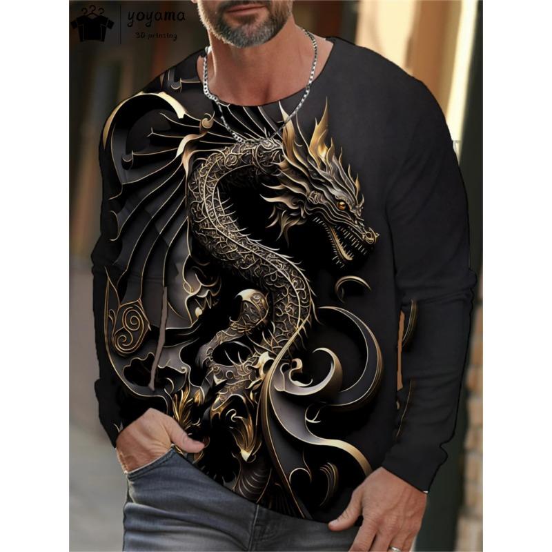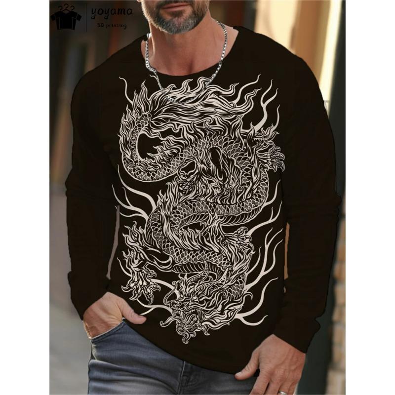 Футболка с рисунком дракона Мужская одежда Футболка Мужская дышащая повседневная мужская футболка с длинным рукавом Модная дизайнерская футболка Топы Футболки