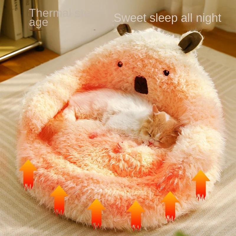 Теплый диван-кровать для домашних животных для маленьких самогреющихся собак и кошек, мягкий, длинный, плюшевый, альпака, удобная форма, кровать для сна кошки, кровать-пончик для домашних животных