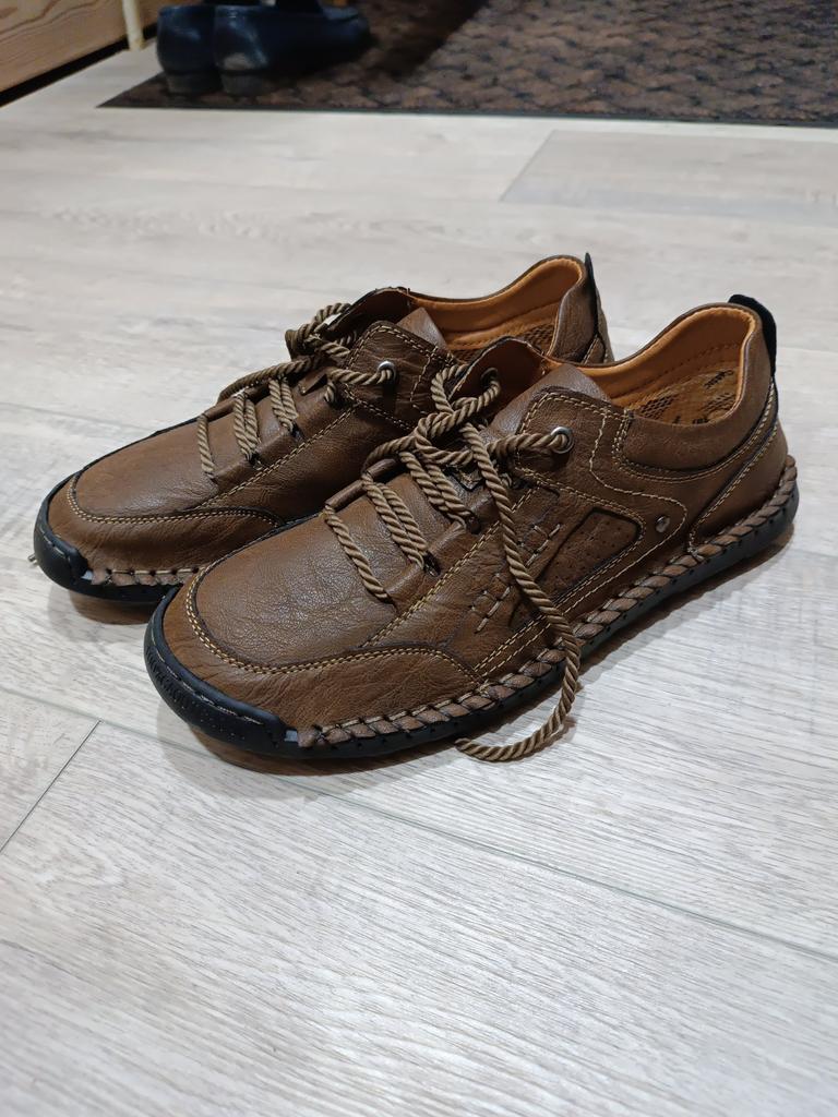 Товар получен в срок как и обещали. Обувь очень удобная и мягкая. На мой размер 42 заказал 44, бодошёл как раз! Кожа как и написано, мягкие и очень удобные. Красивый коричневый цвет. Рекомендую к покупке!
