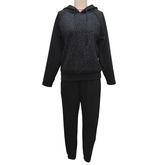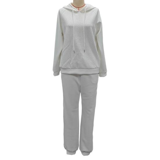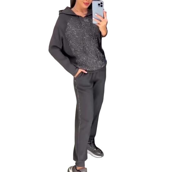 Подчеркните свой стиль с помощью этого шикарного женского костюма, изготовленного из дышащей и легкой полиэстеровой смеси.. Этот комплект из двух предметов идеально подходит для любого сезона. Он имеет свободный крой, который подчеркивает фигуру и обеспечивает максимальный комфорт.. В комплект входят толстовка с капюшоном и длинными рукавами, а также шаровары, которые подойдут для разных типов фигуры и позволят вам с легкостью продемонстрировать свое очарование..