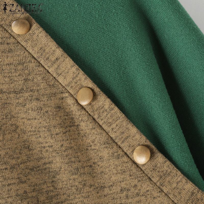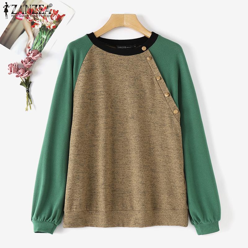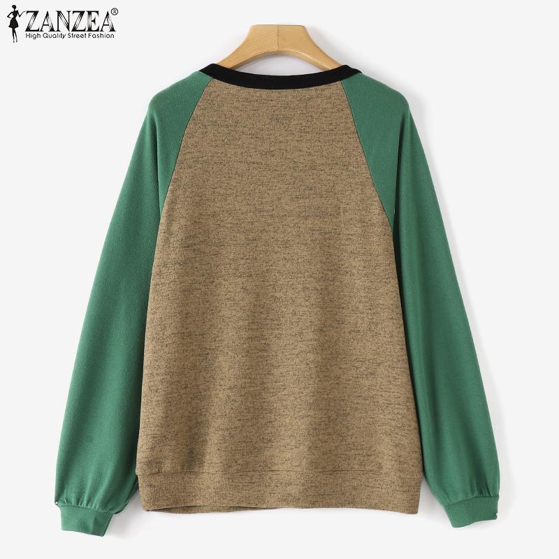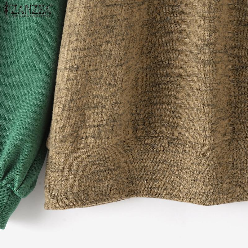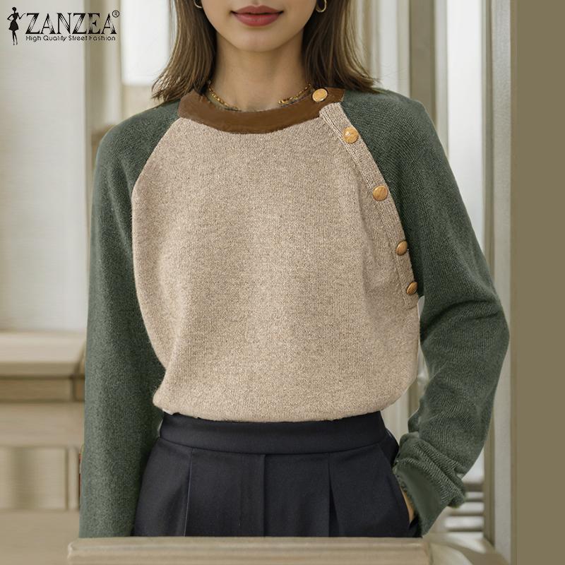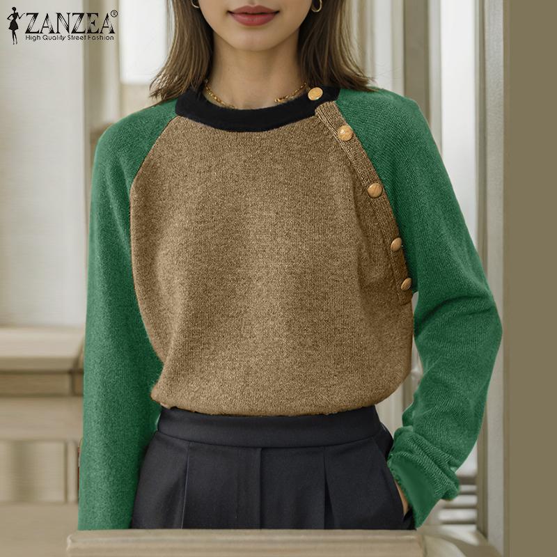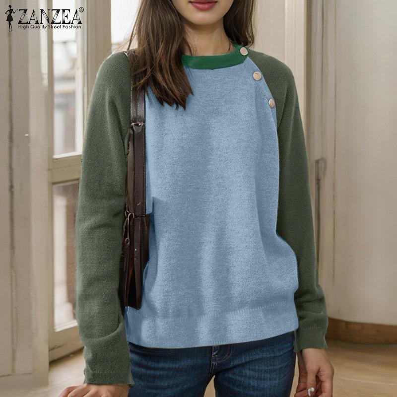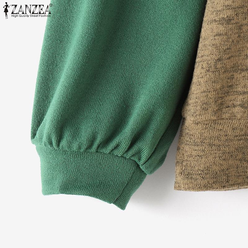ZANZEA Женская мода круглый вырез длинный рукав контрастный цвет пуловер свитера