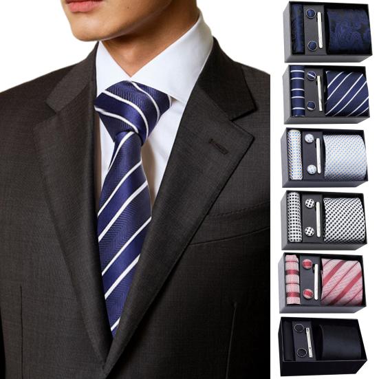 Улучшите свой стиль: Дополните свой гардероб этим изысканным комплектом из 6 предметов, в который входит галстук, две запонки, зажим для галстука и нагрудный платок.. Изготовленное из высококачественной полиэстеровой шелковой ткани, каждое изделие отличается ярким цветом и гладкостью, излучая элегантность и очарование.