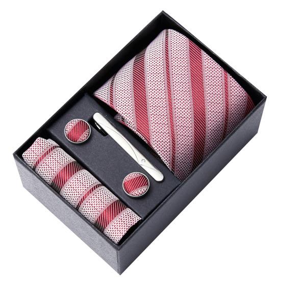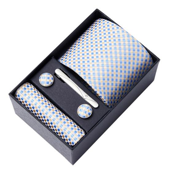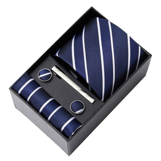 Подчеркните свой стиль с помощью этого изысканного набора запонок в виде галстука и платка для кармана.. Этот набор идеально подходит в качестве подарка: в него входят галстук, две манжеты, зажим для галстука и нагрудный платок, аккуратно упакованные в элегантную подарочную коробку..