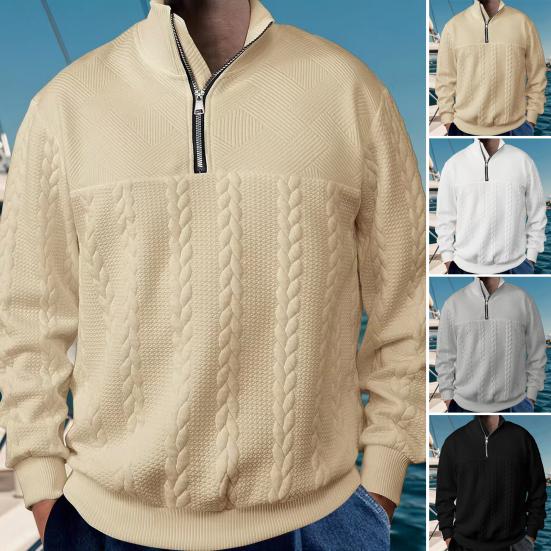 Наш универсальный свитер станет обязательным дополнением к вашему гардеробу.. Изготовлен из мягкой полиэфирной ткани, сочетает в себе комфорт и стиль.. Однотонный дизайн с воротником-стойкой и застежкой-молнией добавит нотку моды вашему образу.