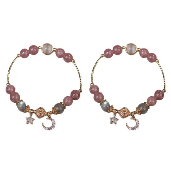 Универсальная элегантность: Легко украсьте свой образ с помощью этого браслета из бусин искусственного агата с очаровательной подвеской в виде маленькой луны со стразами.. Будь то повседневная прогулка, рабочий день, вечеринка или романтическое свидание, этот универсальный аксессуар привлечет внимание и соберет комплименты, куда бы вы ни пошли.