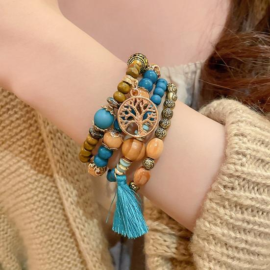 Универсальный стиль: Легко улучшите свой образ с этим набором из 4 эластичных браслетов в стиле бохо с разноцветными деревянными бусинами и кисточками.. Простой, но элегантный дизайн дополнит любую прическу и наряд, что делает его идеальным для того, чтобы поделиться им с семьей, друзьями или любимым человеком.