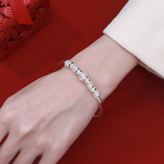 Прочная конструкция из сплава: Этот браслет, изготовленный из посеребренного медного сплава, отличается исключительной прочностью и антифрикционными свойствами.. Тонкая работа гарантирует долговечность аксессуара, который станет ярким акцентом любого наряда.