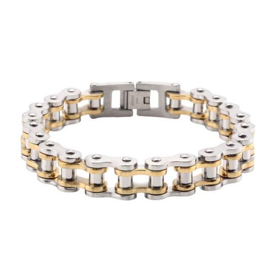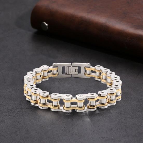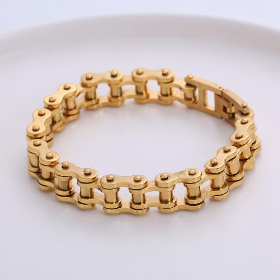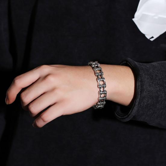 Дизайн ретро-цепи для мотоцикла: Придайте этому браслету хип-хоп-стиль с дизайном мотоциклетной цепи. Простота сочетается с дерзким стилем, создавая универсальный аксессуар, который будет легко выделяться в любой обстановке.