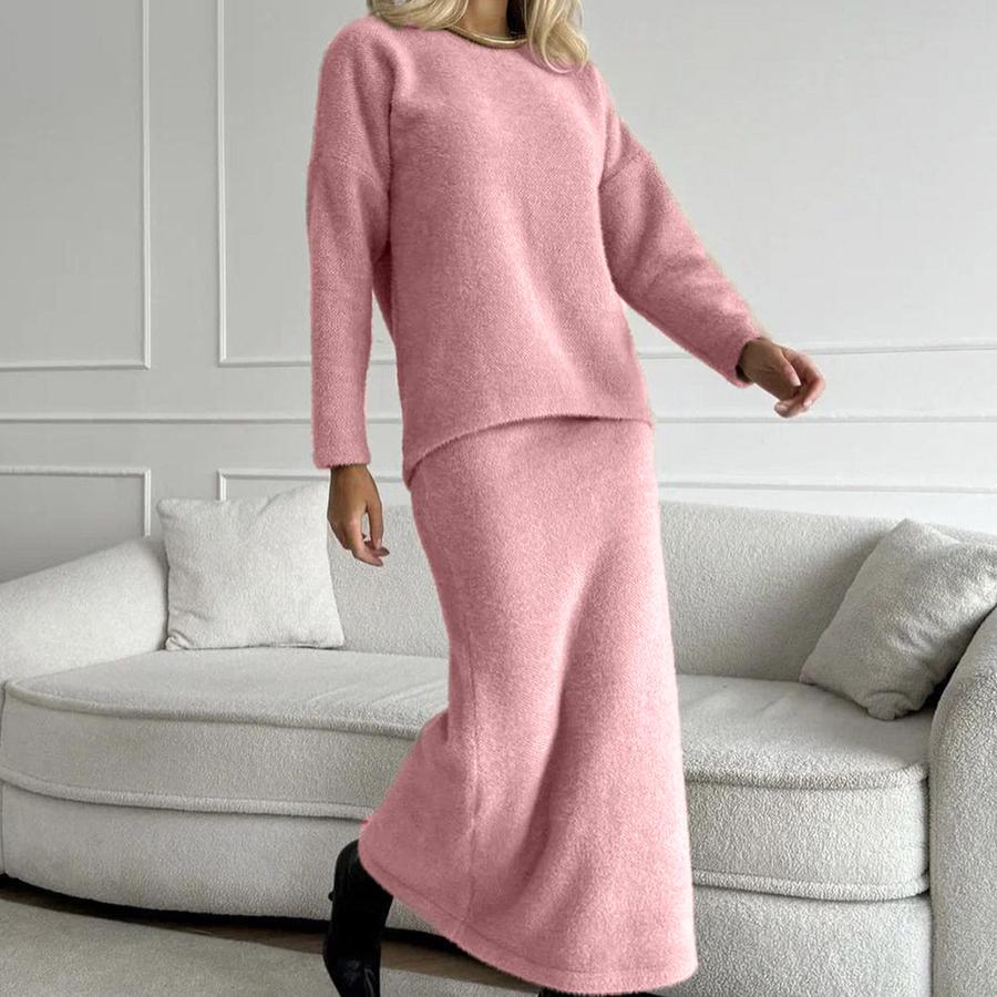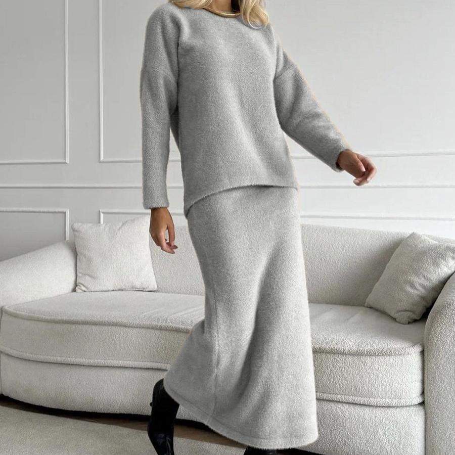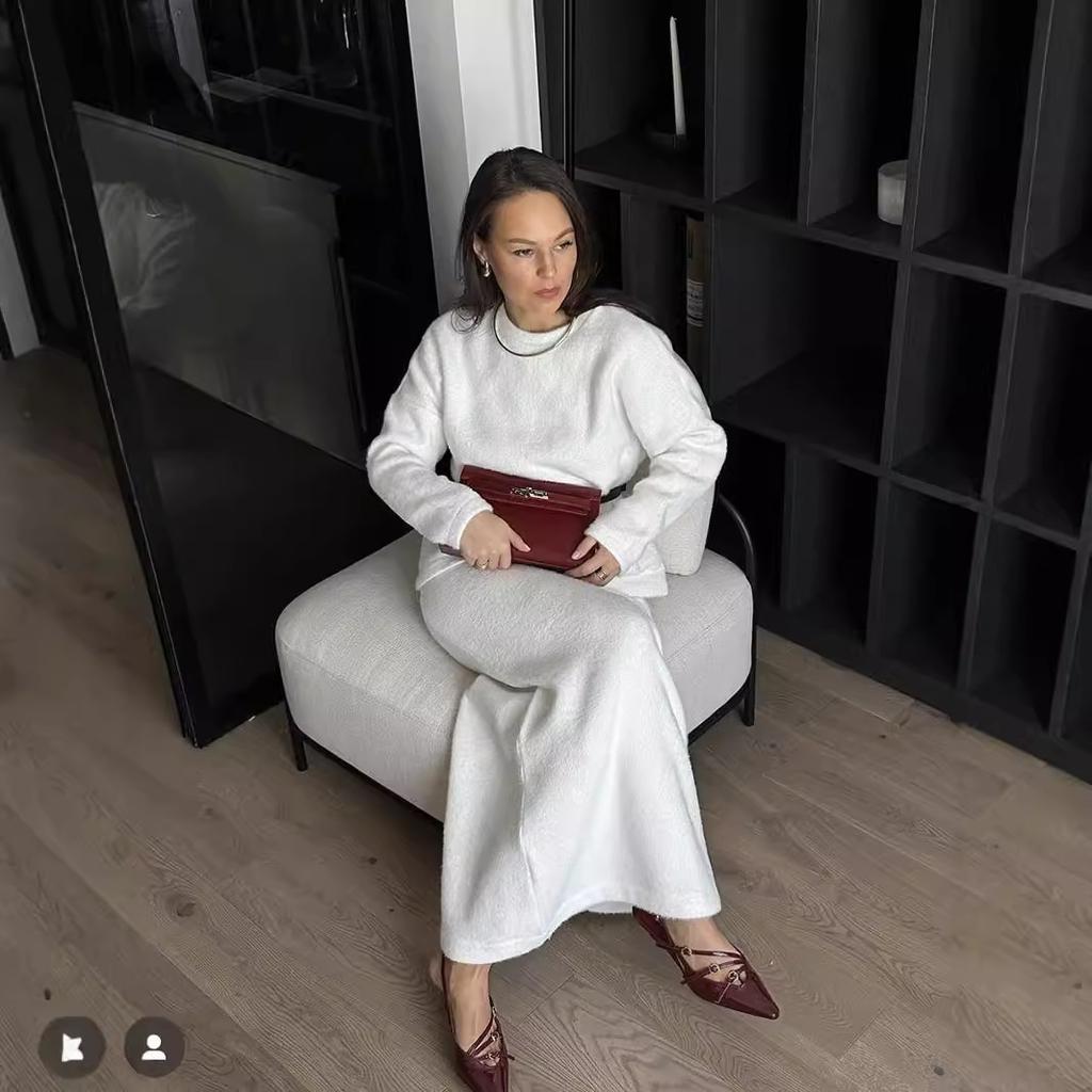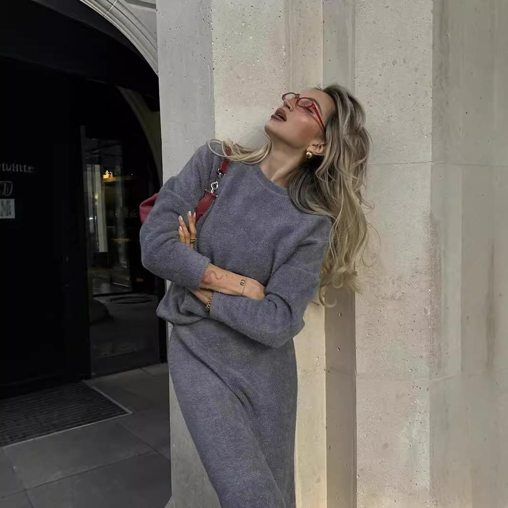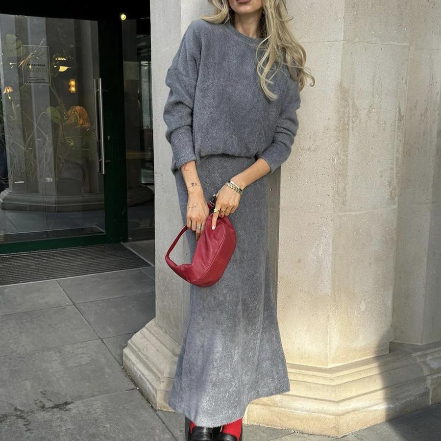 Женские комплекты из 2 предметов Свободные трикотажные пуловеры, свитера, топы, облегающая макси-юбка, спортивный костюм, объемный осенне-зимний дорожный спортивный костюм, комплекты для отдыха для женщин