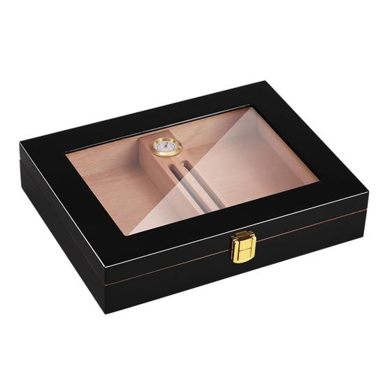 Этот хьюмидор, созданный для сохранения свежести, оснащен практичными разделителями для удобного размещения ваших сигар.. Стеклянная крышка обеспечивает хороший обзор, позволяя вам следить за своей коллекцией, не нарушая внутреннюю среду.. Механический гигрометр наверху позволяет контролировать уровень влажности в режиме реального времени.