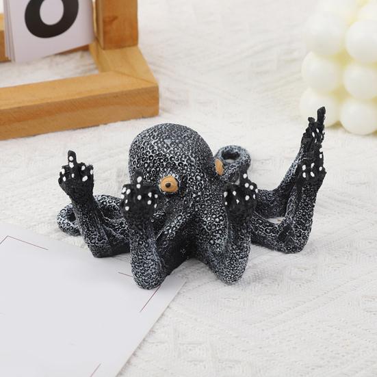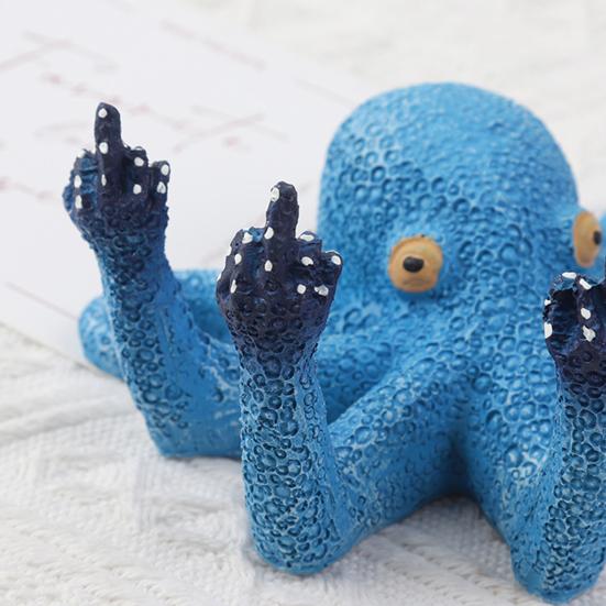 Осьминог дизайн: Изготовленное из высококачественной синтетической смолы, это украшение представляет собой креативного осьминога, поднимающего средний палец, что добавит нотку юмора и индивидуальности любому пространству.