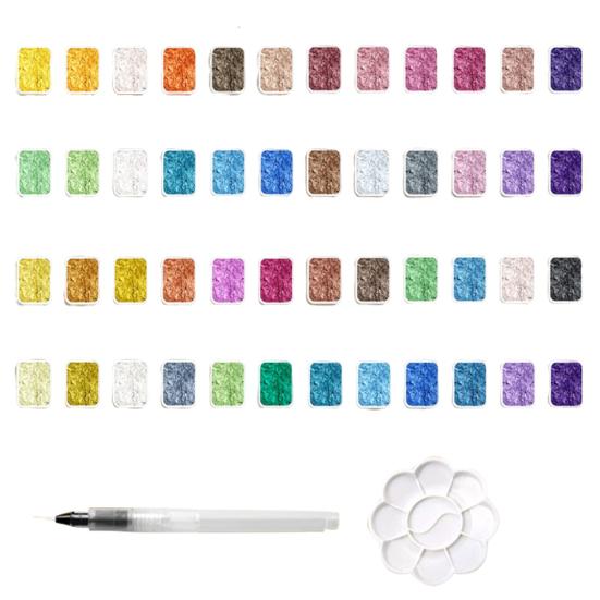 Портативный и удобный: Возьмите свое творчество с собой в дорогу с этим набором акварельных красок 24/36/48/60, помещенным в компактную и прочную палитру для легкого процесса рисования на открытом воздухе.. Оживите мерцающие акварели с помощью капельки воды, и ваше творчество не будет знать границ.