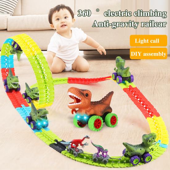 Отправьтесь в мир воображения с функцией антигравитационного автомобиля. Поощряйте терпение и мастерство вашего ребенка, пока он строит захватывающие трассы и отправляется в гонки с динозаврами!