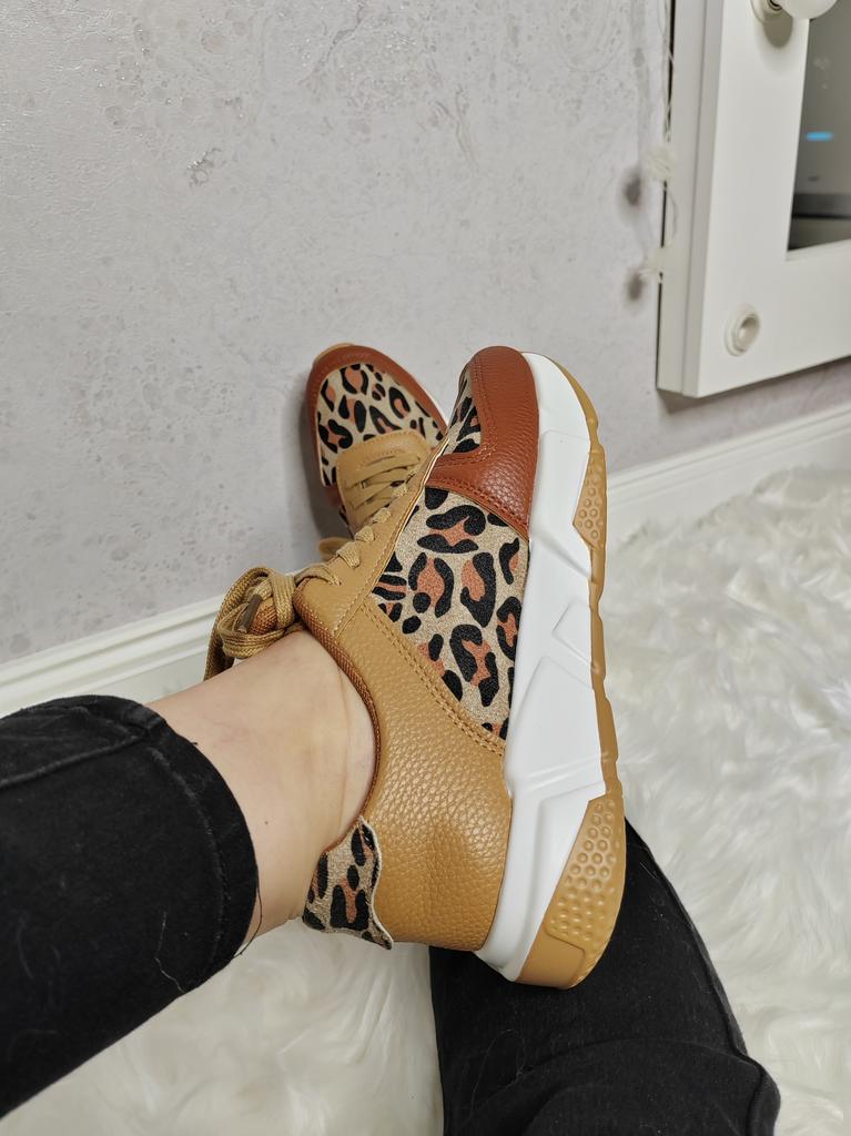 Леопардовые кроссовки У продавца представлены в двух расцветках. Рекомендую любительницам леопардовых принтов. Прекрасно будет сочетаться с леопардовый блузой, например. На широкую стопу 24 см, российский 37 размер, идеально подошли в 38 размере. Полностью соответствуют размерной сетке продавца, что не может не радовать! Кроссовки очень удобные, на ножках как тапочки, дизайн интересный! Выполнены очень аккуратно, следов клея нет, посторонних запахов нет. Спасибо продавцу! ❤️ Спасибо Джум! ❤️