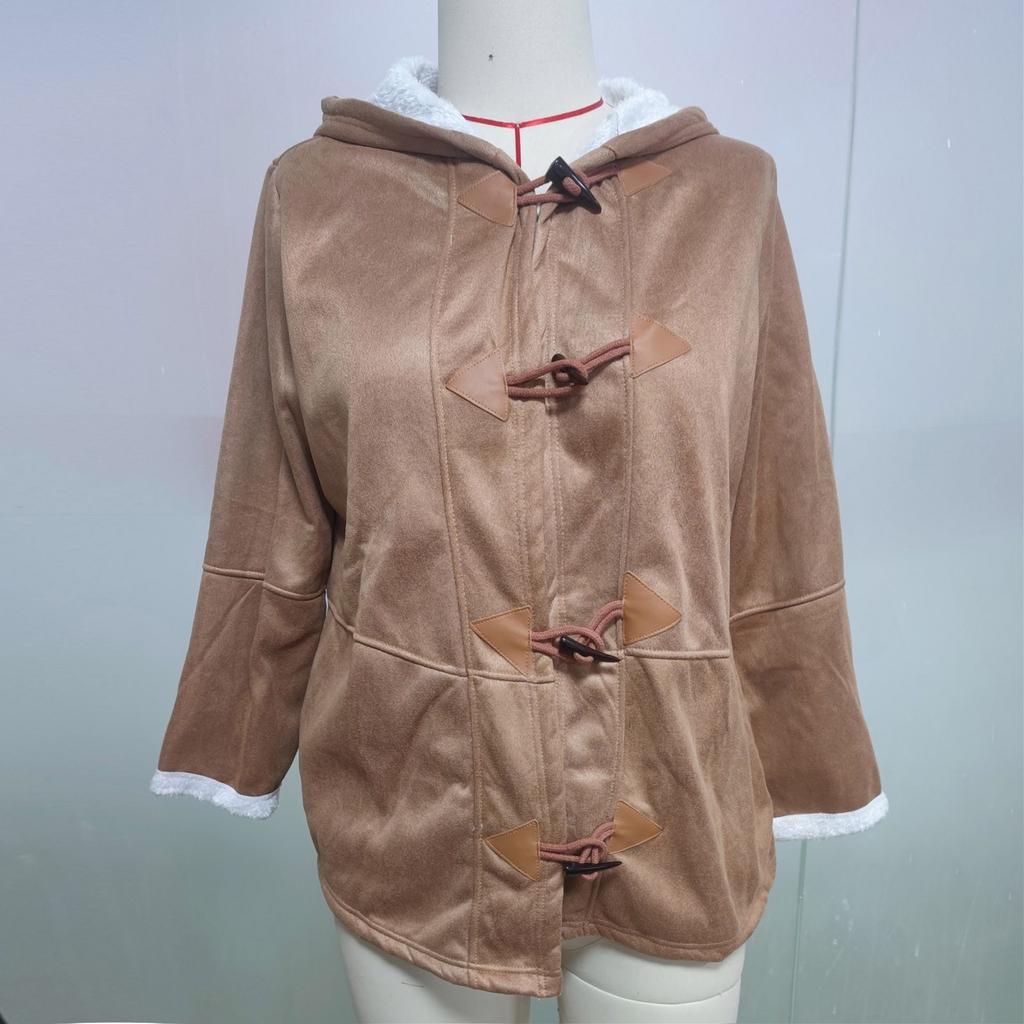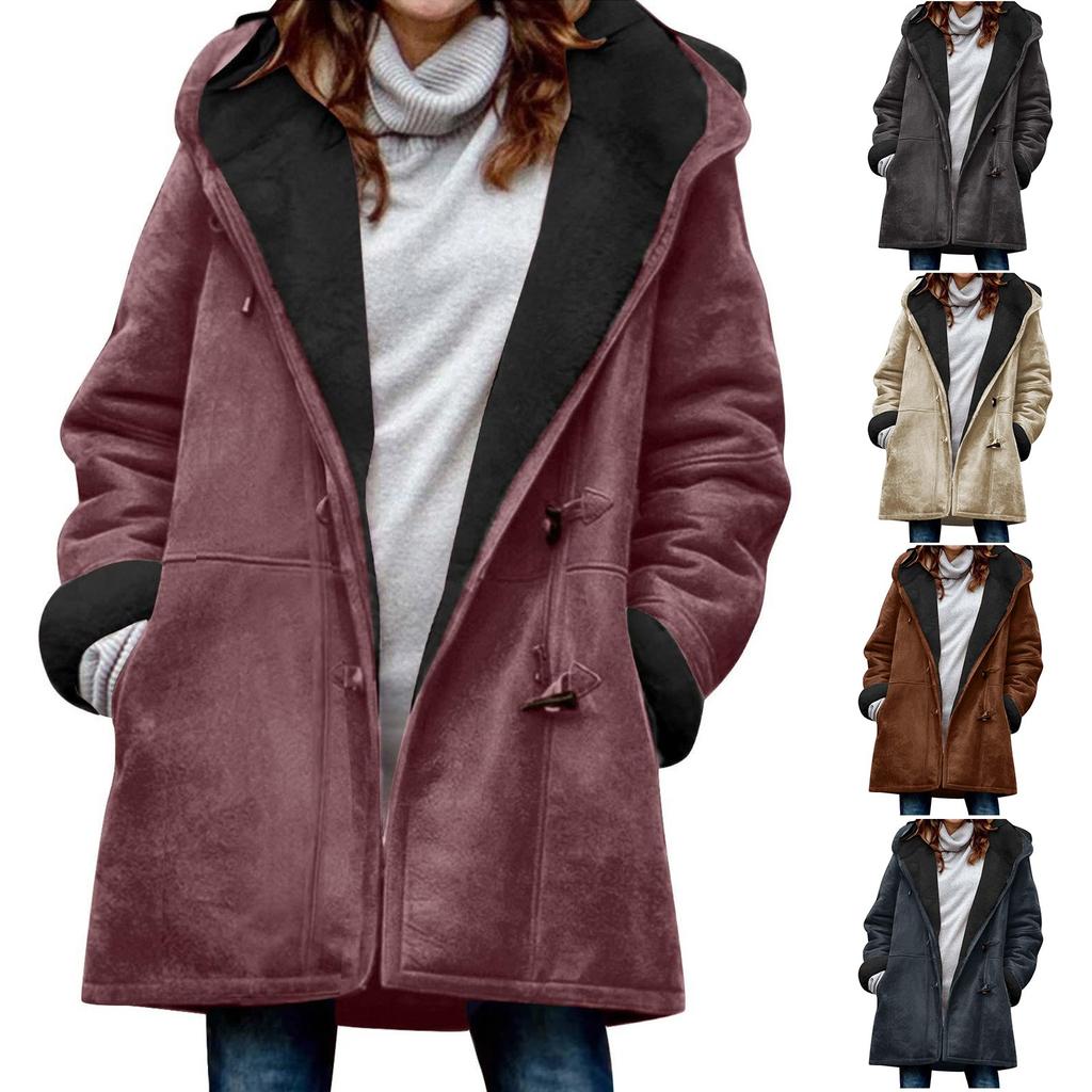 Женское зимнее пальто с флисовой подкладкой, куртка с длинным рукавом, роговые пуговицы, плюшевое теплое пальто