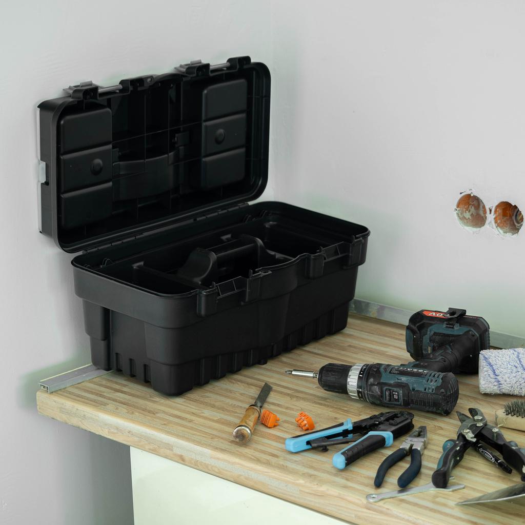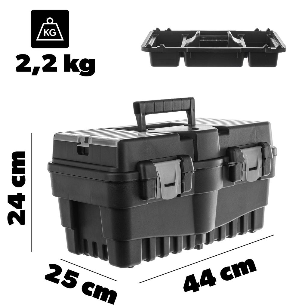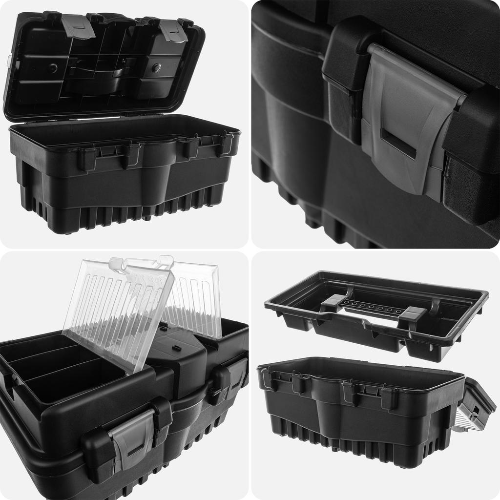 Вместимость и организация - благодаря органайзерам в крышке ящика можно легко хранить мелкие элементы, такие как болты или шурупы, а глубокий лоток обеспечивает дополнительное место для более крупных инструментов.