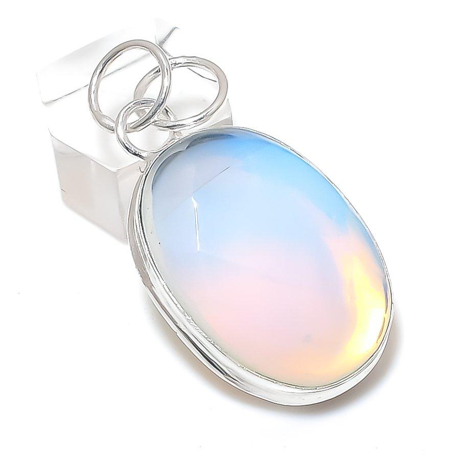 Этническая подвеска из молочного опала и серебра 925 пробы 1,81"