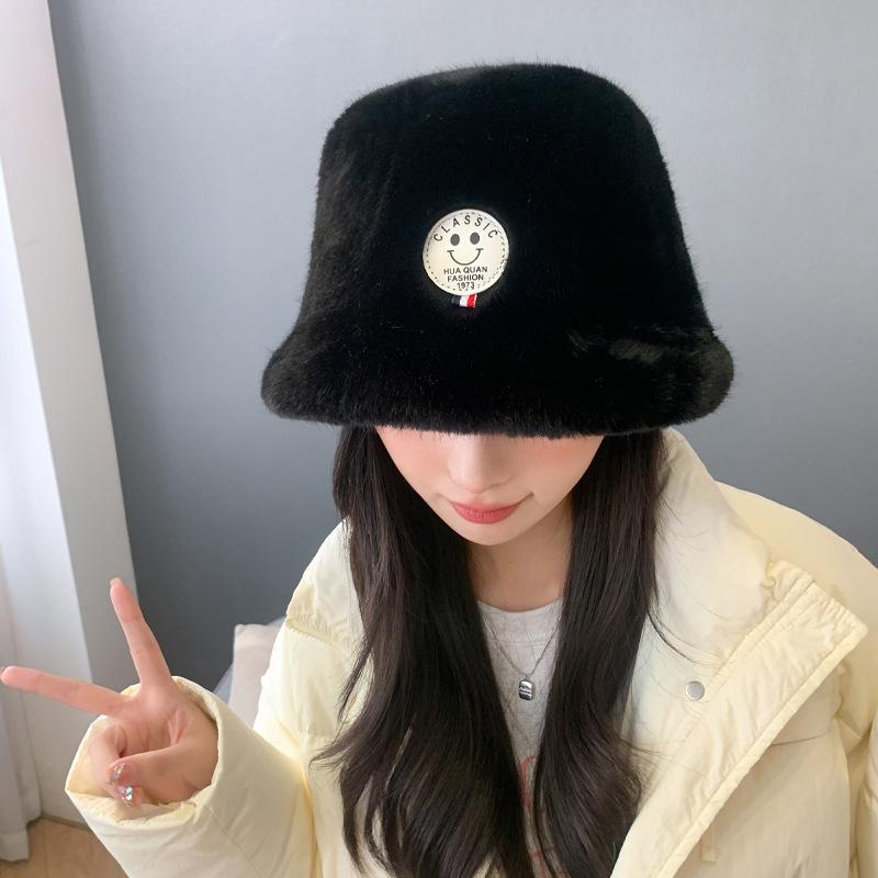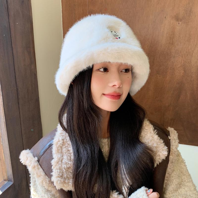 Японская шляпа из лисьего меха, теплая, однотонная, милая и симпатичная, шляпа-ведро