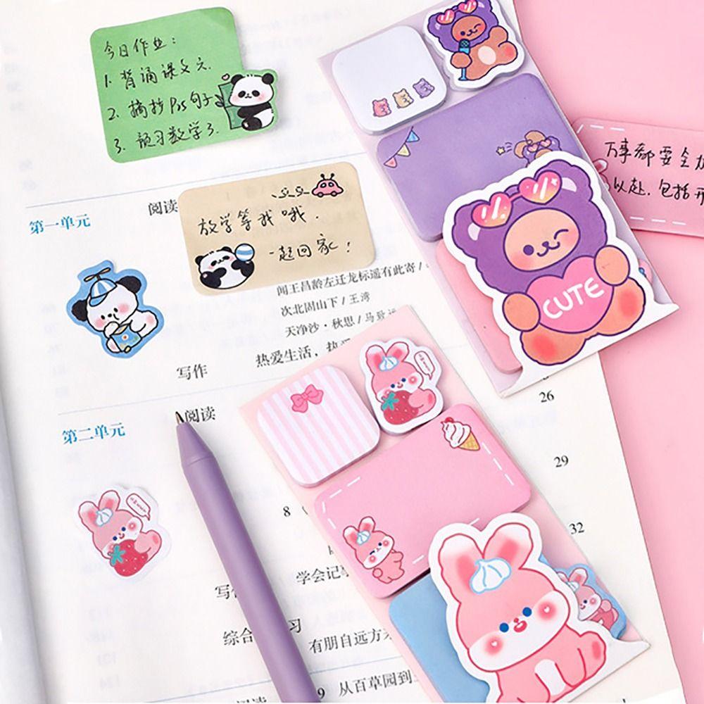 100Sheets Stationery Sticky Notes Cartoon Animals Message Notes Kawaii Notepad