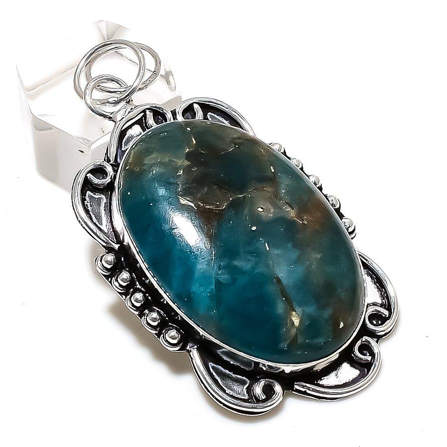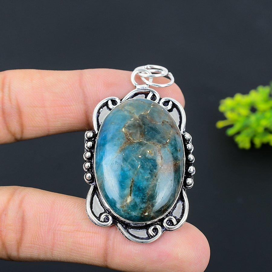 Неоново-голубой апатит драгоценный камень 925 стерлинговое серебро ювелирный кулон 2,56" H9L32