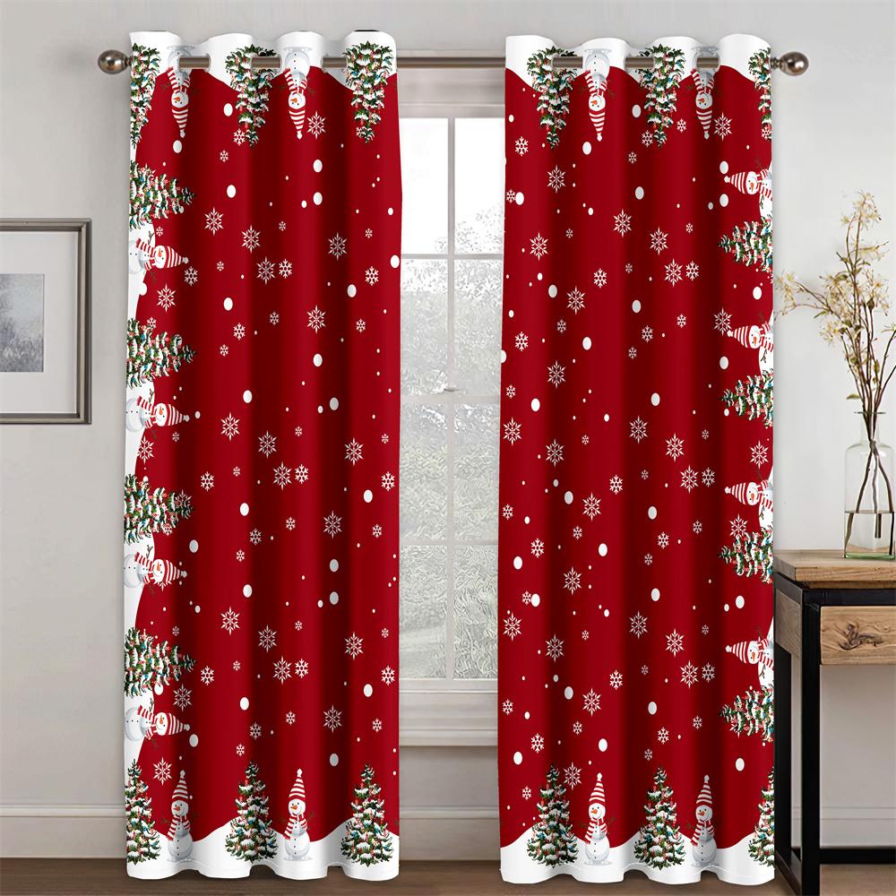 Веселого Рождества, красный снеговик, Санта-Клаус, елка, счастливого Нового года, 2 панели, тонкие затеняющие шторы для гостиной, спальни, декор на крючке