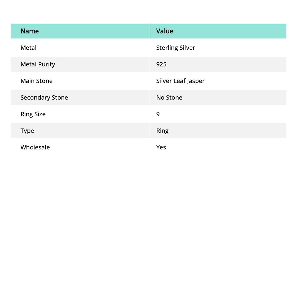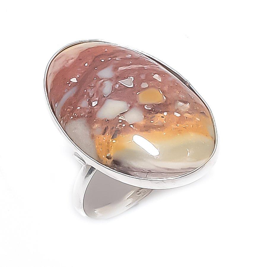 Драгоценный камень Яшма Серебряный Лист Ручной работы Кольцо из стерлингового серебра 925 пробы Размер 9 N8J52