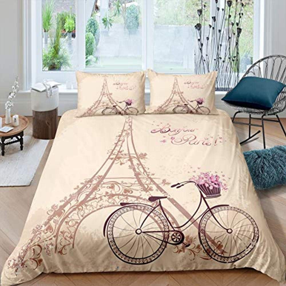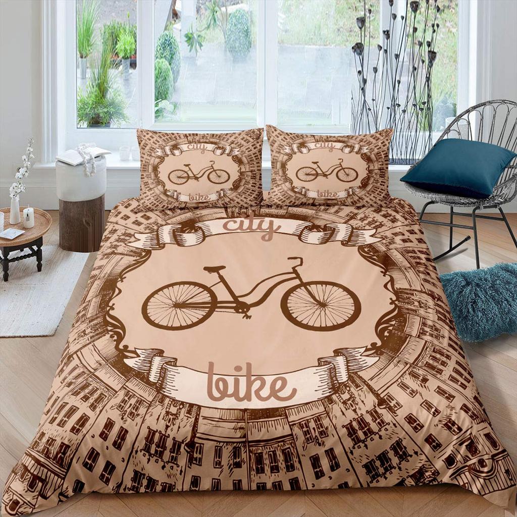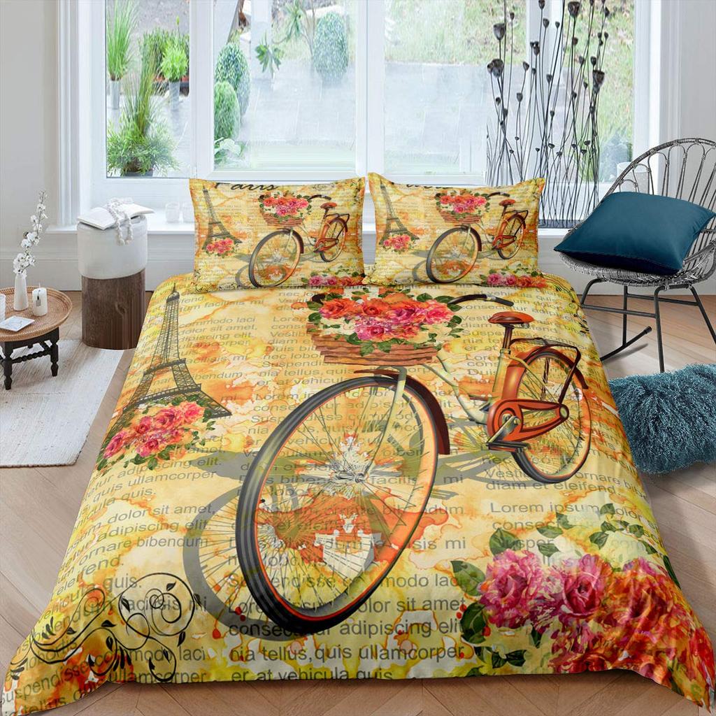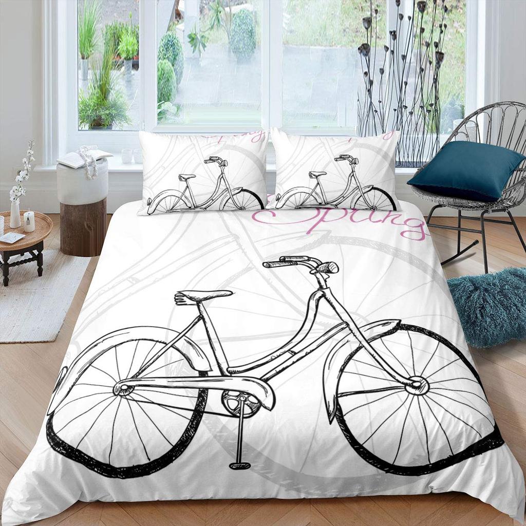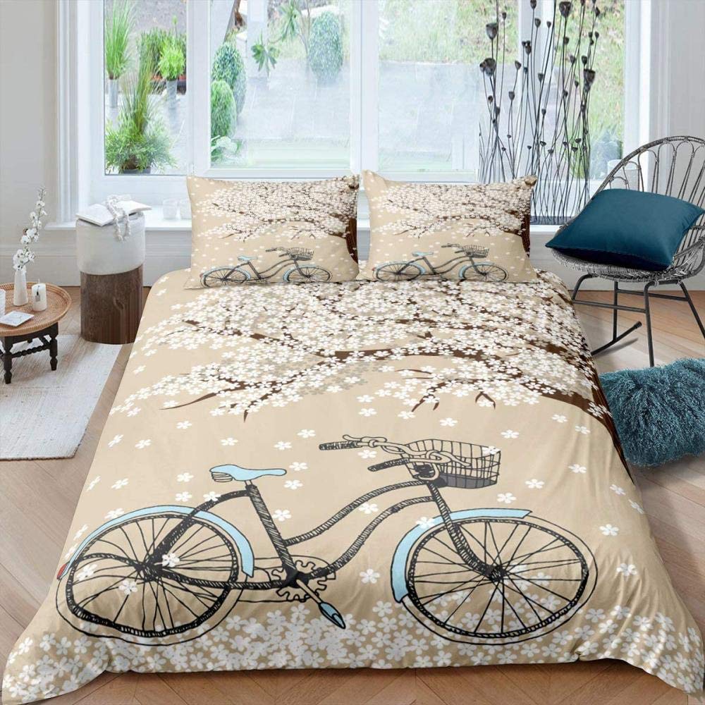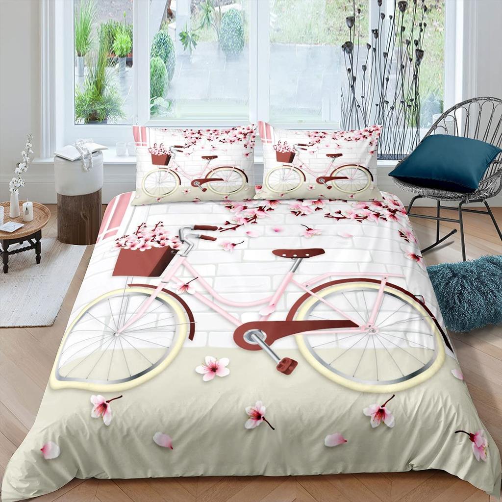 Розовый пододеяльник с велосипедом для девочек и женщин, двуспальный, полный размер «king size», комплект постельного белья с изображением роз, велосипедный цветочный зеленый листовой чехол