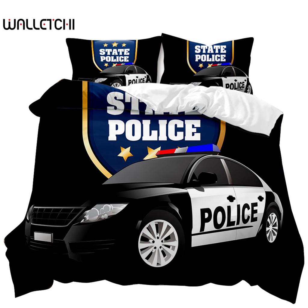 Пододеяльник с изображением полицейской машины, черный комплект постельного белья с изображением полицейской машины, чехол для одеяла с изображением мультяшного транспортного средства, красный чехол для пододеяльника с изображением полицейских огней из полиэстера — купить товар онлайн с бесплатной доставкой по всему миру!