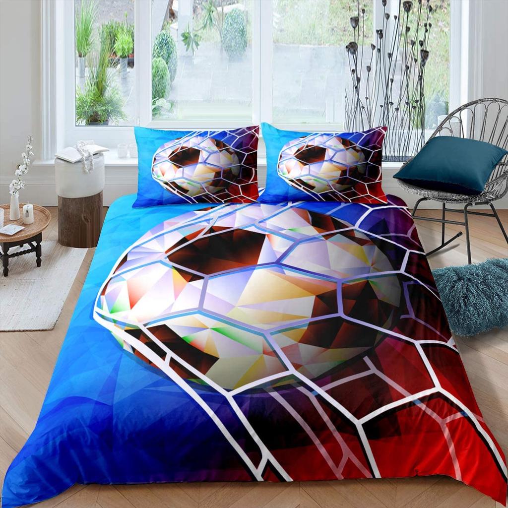 Футбольный комплект постельного белья King Queen Полноразмерный футбольный узор полиэстеровый пододеяльник для детей подростковый футбольный комплект постельного белья